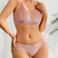 Ladymate ODM/OEM Conjunto De Sujetador Y Bragas女性用ワイヤーフリーベルベットブラパンティセットセクシーなストライプ未パッドブラブリーフセット