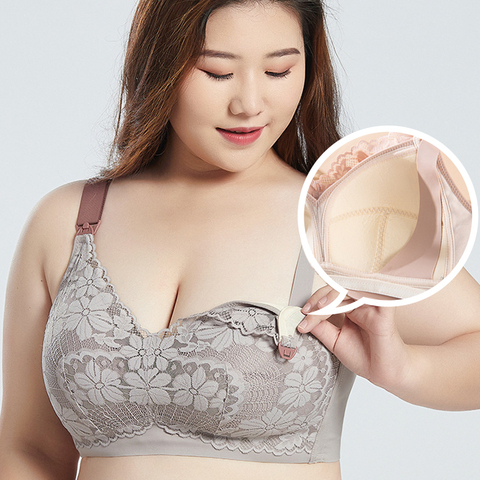 女性用レースワイヤーフリーブレスト授乳ブラフロントバックルレースブラプラスサイズパッド入りワイヤレススリープトップスフロントクロージャー看護ブラ